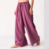 Châu Âu Và Mỹ Của Phụ Nữ Dây Rút Sọc Rộng Chân Giản Dị Quần Sọc Kỹ Thuật Số Thấp Eo Lỏng Quần Giản Dị
